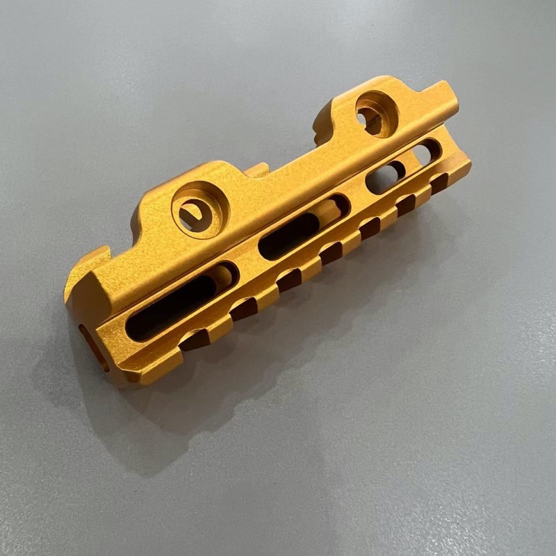 100目噴砂,金色光亮均勻。陽*氧化后可增加鋁合金材料耐用性,表面一層氧化膜可以有效防止材料氧化變色,油污侵蝕。
